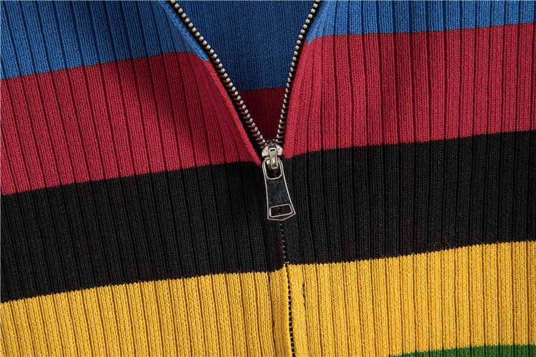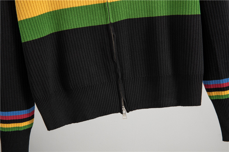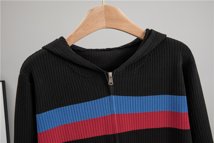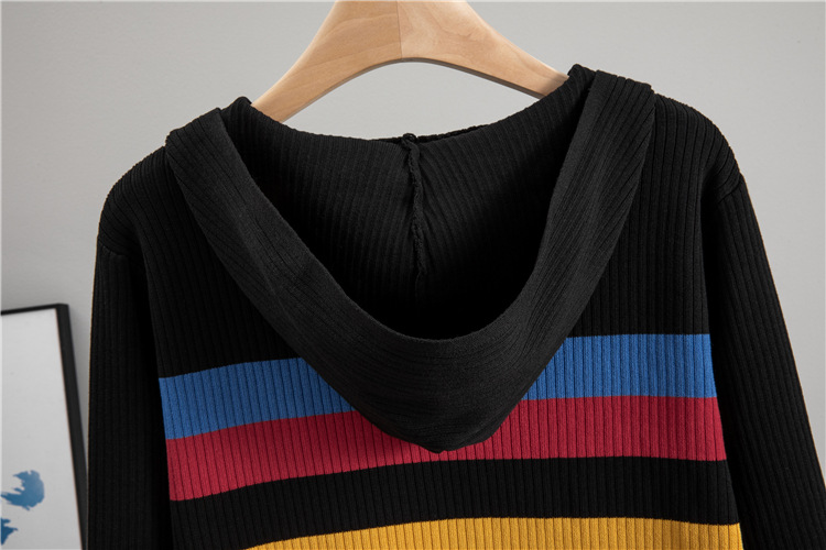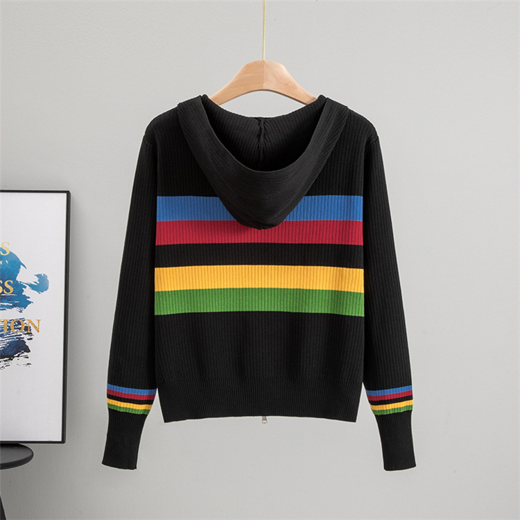Autumn Winter Hooded Slim Fit Slimming Rainbow Long Sleeved Knitted Cardigan for Women Younger