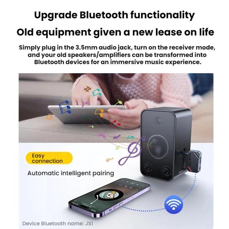 6. Connect to the 3.5mm audio jack, activate receiver mode, and transform old speakers/amplifiers into Bluetooth devices for an immersive music experience.