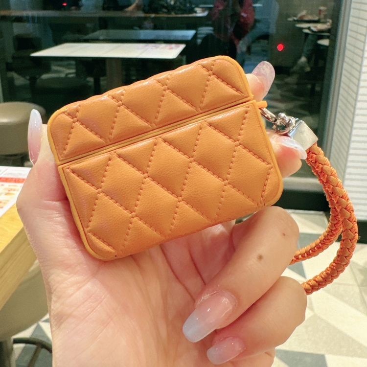 Down Coat Texture PU Earbuds Box PC Case with Lanyard, For AirPods 1 / 2 - Image 6