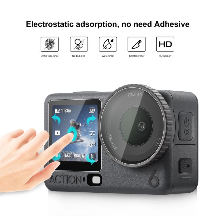 For DJI Osmo Action 6 / 6 Pro PULUZ Lens + Front and Back Screen Tempered Glass Film, Tempered Glass Film