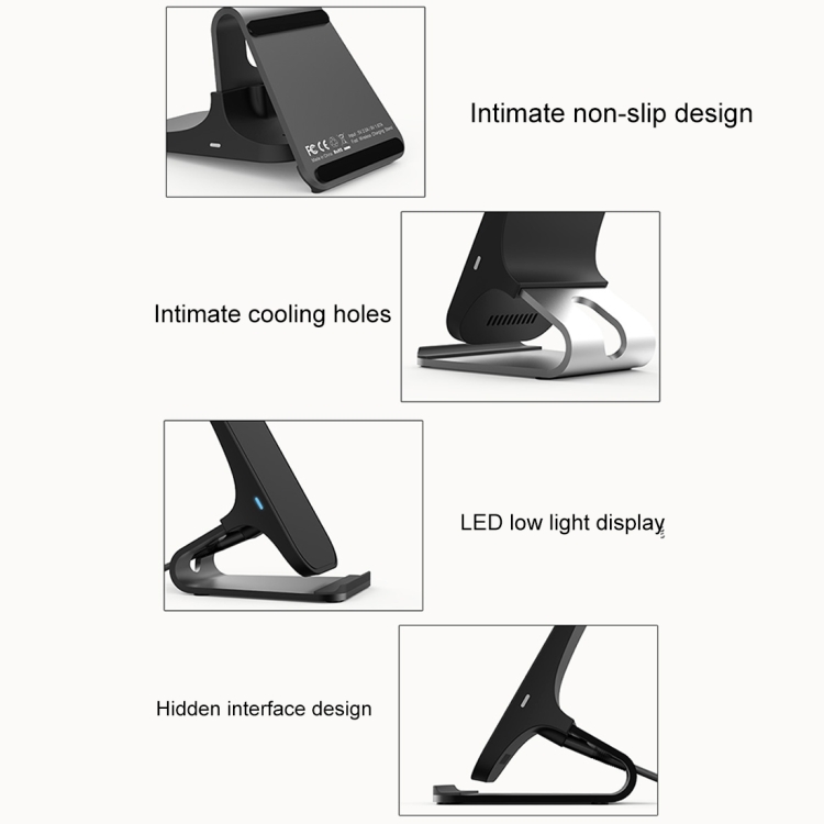 HAMTOD M5 15W Intelligent Dual Coil Design Qi Standard Holder Wireless Charger with Indicator Light, Support Fast Charging, M5 Black, M5 Silver - Image 8