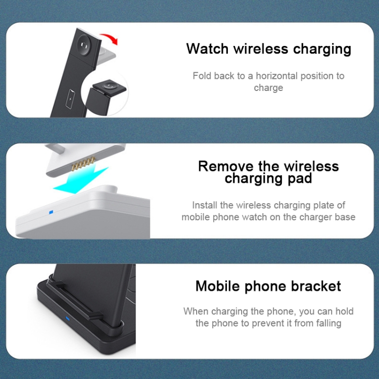 HQ-UD21 3 in 1 Folding Mobile Phone Watch Multi-Function Charging Stand Wireless Charger for iPhones & Apple Watch & Airpods, HQ-UD21 - Image 11