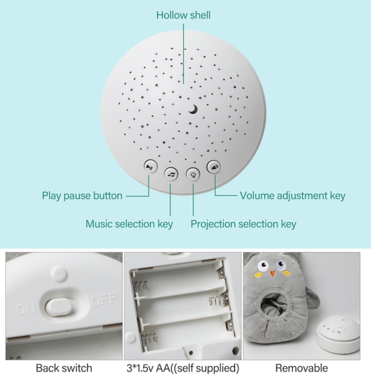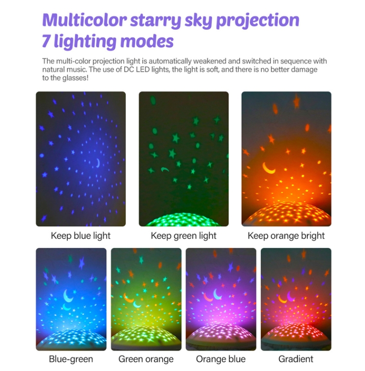 3. 3 projection modes and various light colours to attract babys attention