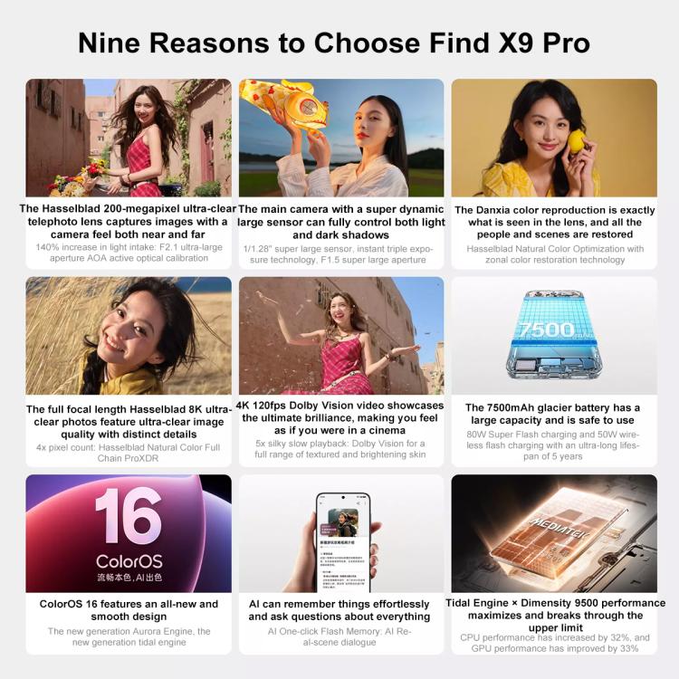 OPPO Find X9 Pro AI Phone, 16GB+512GB, Screen Fingerprint, 6.78 inch ColorOS 16.0 Dimensity 9500 Octa Core, NFC, OTG, Network: 5G, 16GB+512GB