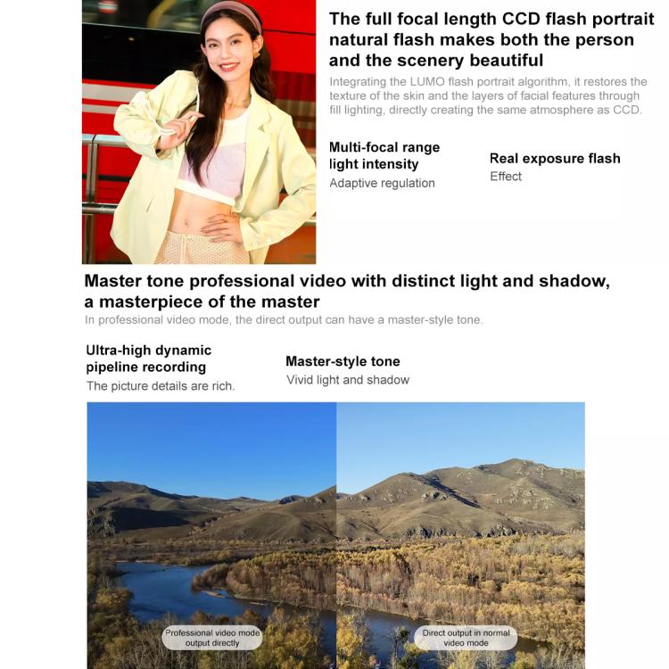 1. Rear: 50MP wide F1.5 + 50MP u-wide F2.0 + 200MP telephoto F2.1 + Danxia color restoration lens F2.4, supports 3x optical zoom, 120x digital zoom