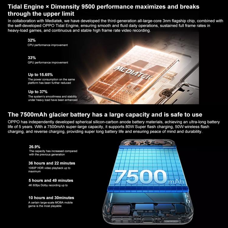 1. CPU: MediaTek Dimensity 9500, 3nm, octa-core, 4.21GHz