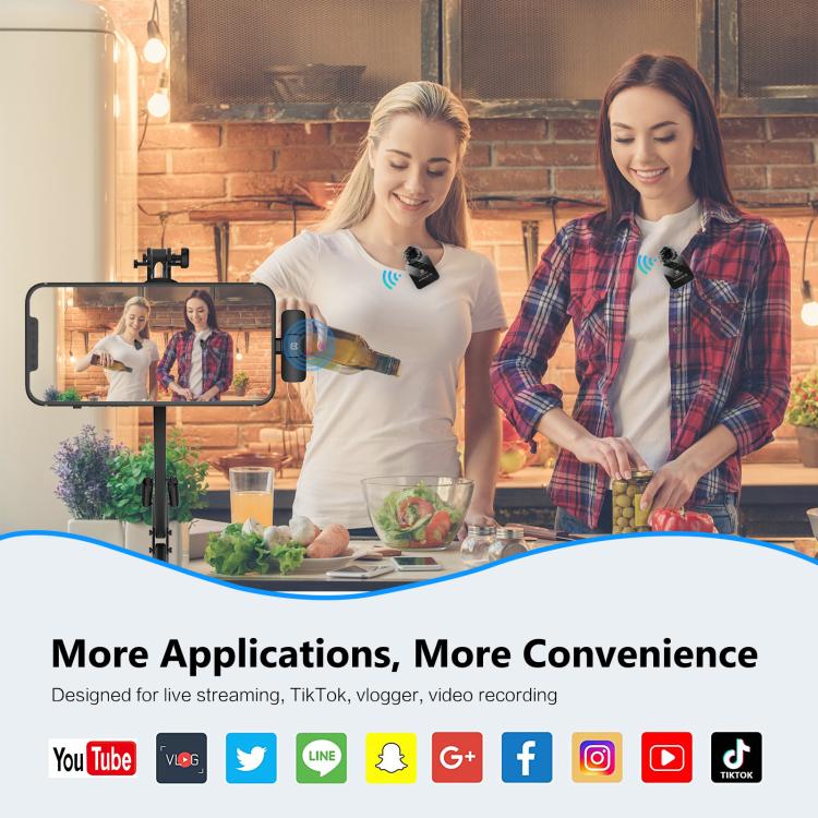 1. Wireless pickup microphone 2.4G: wireless connection, can provide up to 48K high-fidelity recording