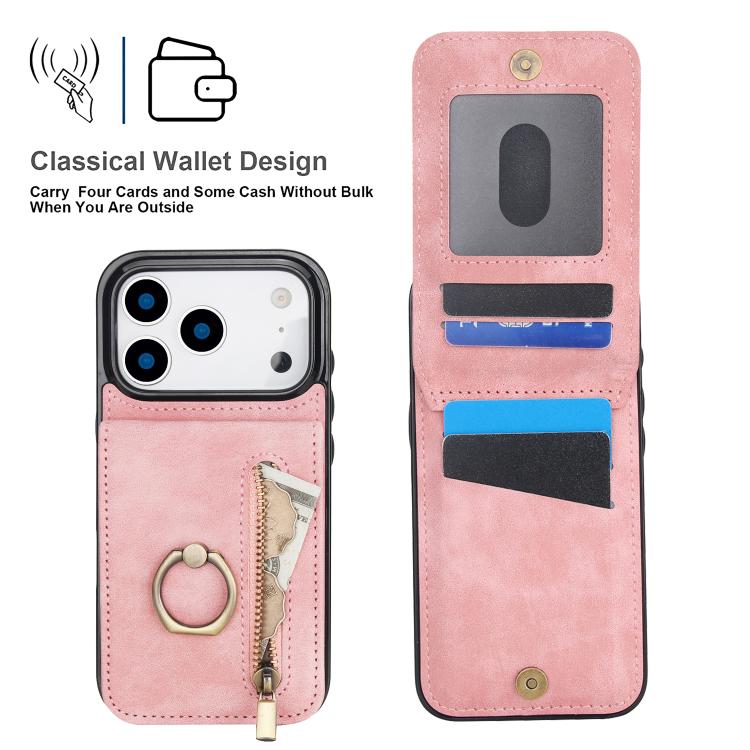 Retro Ring and Zipper RFID Card Slot Phone Case, For iPhone 17 Pro Max, For iPhone 17 Pro, For iPhone 17