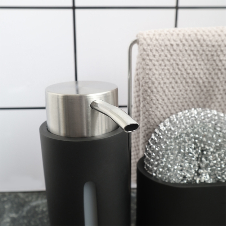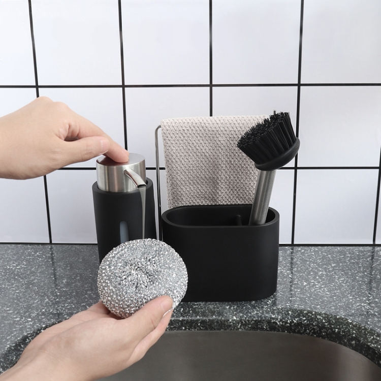 Soap Dispenser Kitchen Sink Steel Wire Ball Pot Brush Rag Storage Rack Set