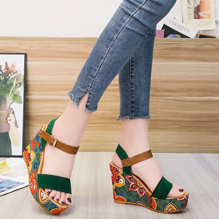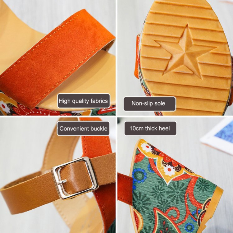 Summer Floral Fabric Slope Heel Women Sandals Comfortable Casual High Heels, 35, 36, 37, 38, 39, 40