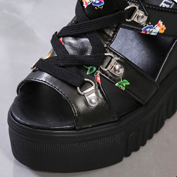 Summer Roman Sandals High Heel Floral Printed Cross Strap Women Shoes, 36, 37, 38, 39, 40, 41, 42