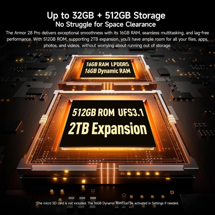 3. Memory: 16GB LPDDR5 + 16GB Dynamic RAM (The Dynamic RAM can be extended in Settings if needed. )+ 512GB UFS3.1