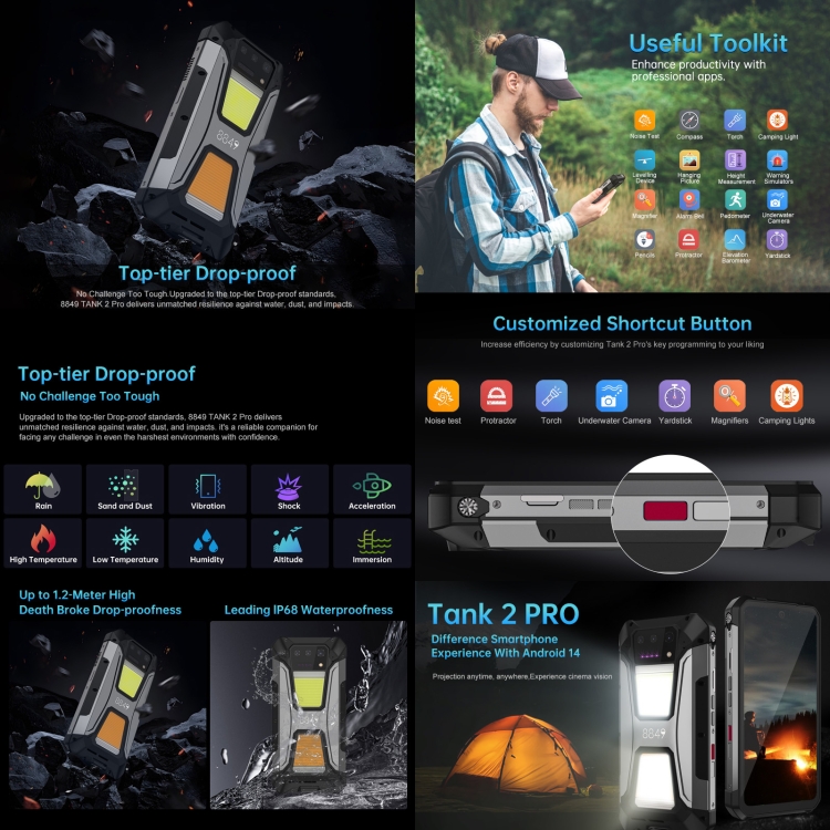 HomeElectronicsCell Phones & AccessoriesUnihertz 8849 Tank 2 Pro Night Vision Projector Rugged Phone, 12GB+256GB, 6.79 inch Android 14 MTK6789 Octa Core, Network: 4G
