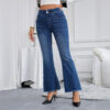 HomeClothing, Shoes & AccessoriesWomenJeansWomen Stretch Hip Lift Slim Waist Jeans Bell Bottom Pants Embroidered Women Pants Raw Edge Denim Trousers