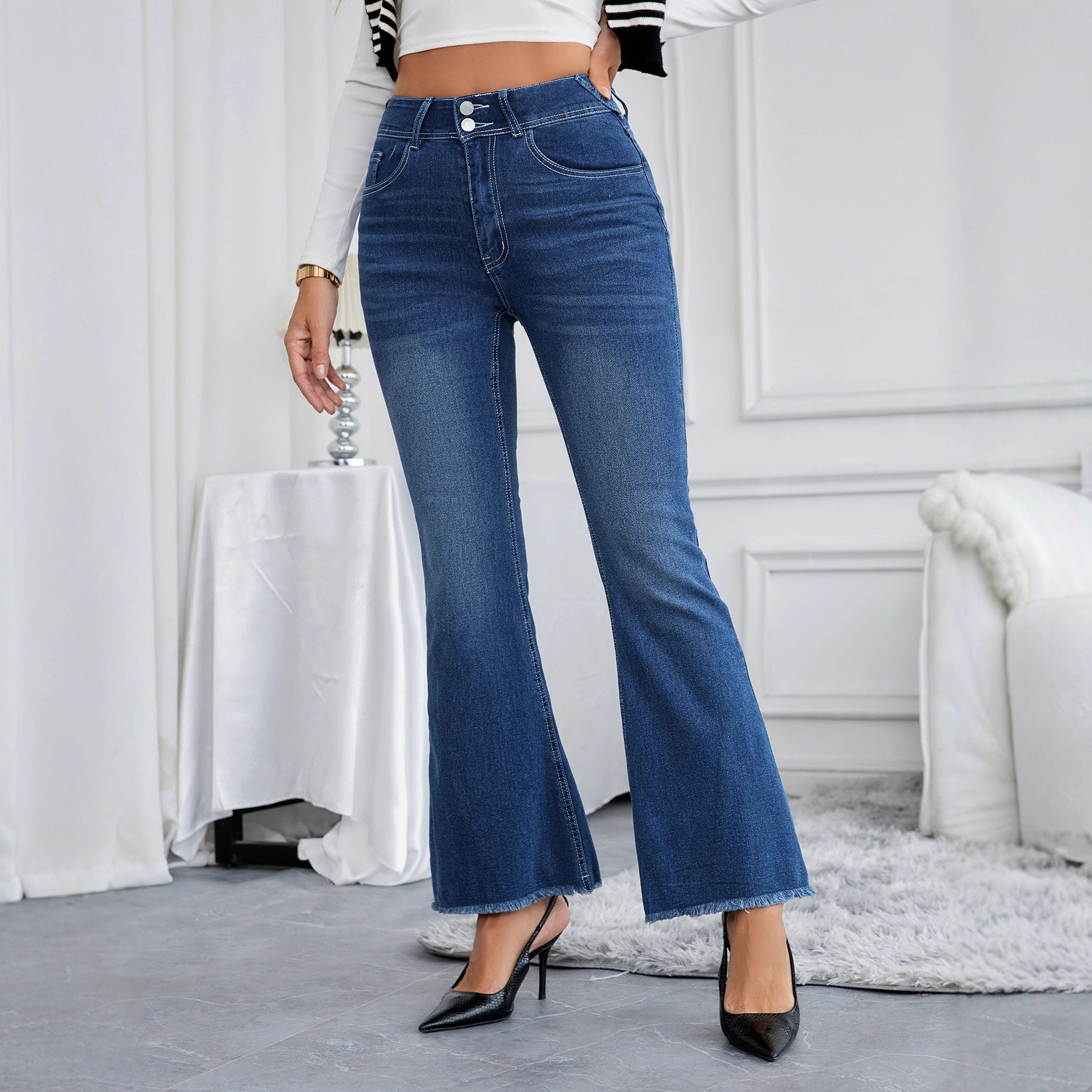 Women Stretch Hip Lift Slim Waist Jeans Bell Bottom Pants Embroidered Women Pants Raw Edge Denim Trousers