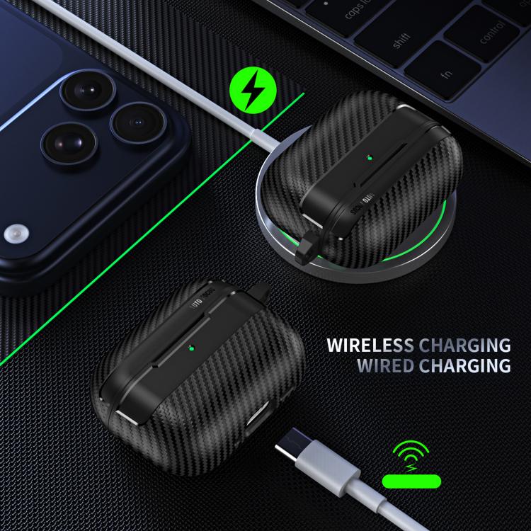 XDcase Carbon Fiber Texture Earbud Case with Hook, For AirPods Pro 3, For AirPods 4