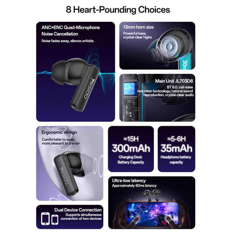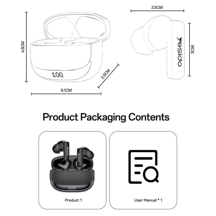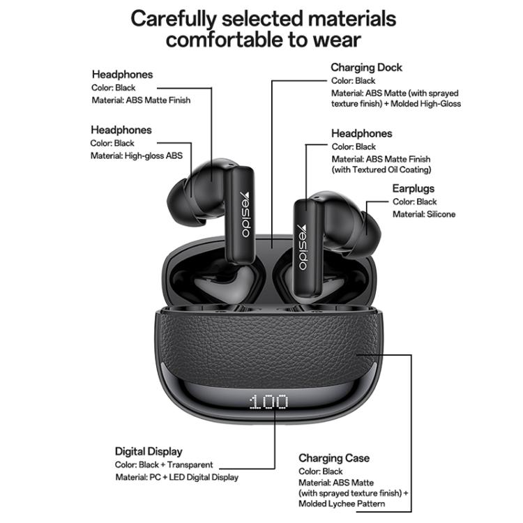 HomeElectronicsCell Phones & AccessoriesCell Phone Audio Docks & SpeakersEarphone & HeadsetBluetooth EarphoneYesido TWS40 Quad-Microphone ANC+ENC Noise Reduction TWS Bluetooth Earphone, TWS40