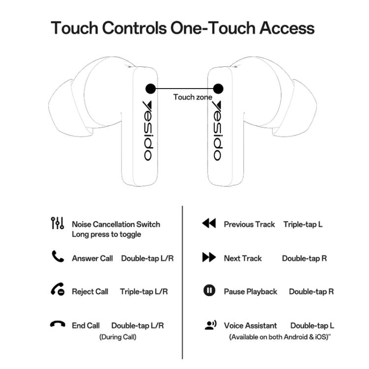 Yesido TWS40 Quad-Microphone ANC+ENC Noise Reduction TWS Bluetooth Earphone, TWS40