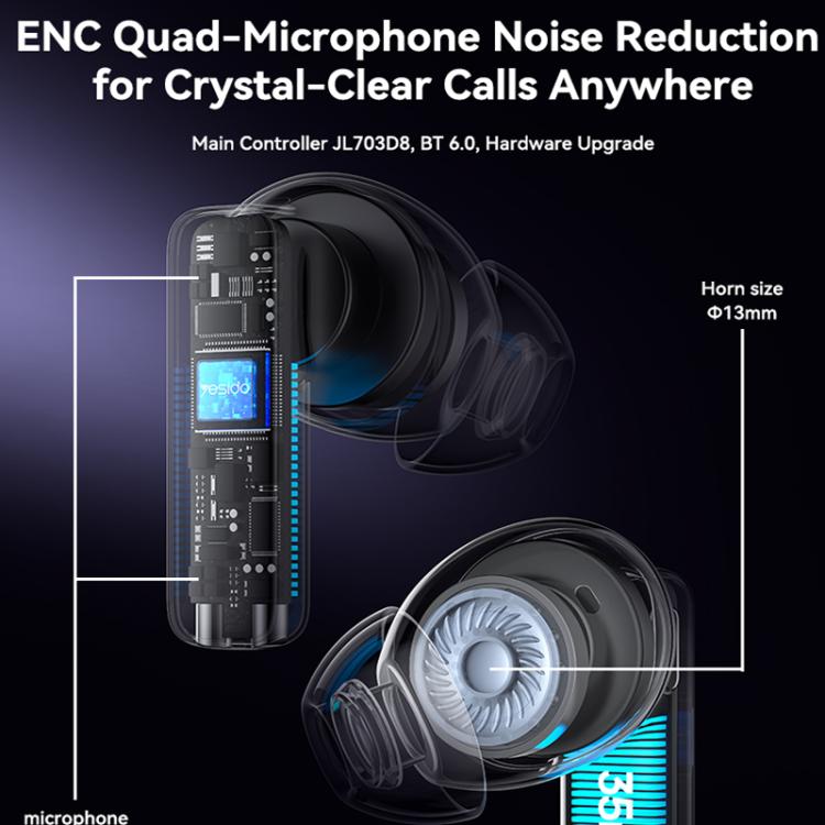 Yesido TWS40 Quad-Microphone ANC+ENC Noise Reduction TWS Bluetooth Earphone, TWS40 - Image 12